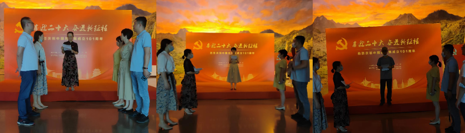 “我志愿加入中国共产党......对党忠诚,积极工作,为共产主义奋斗终身,随时准备为党和人民牺牲一切,永不叛党。”集团机关各党支部,人文集团、地产集团、南方环保、江西环保、大成投资、大成资本、友服公司等党组织分别开展集体重温入党誓词。面对鲜红的党旗,每一位党员举起右拳,庄严宣誓,字字铿锵、心潮澎湃,回顾了自己在入党宣誓时的庄严承诺和坚定信念,心灵再一次受到洗礼,思想又一次得到升华。